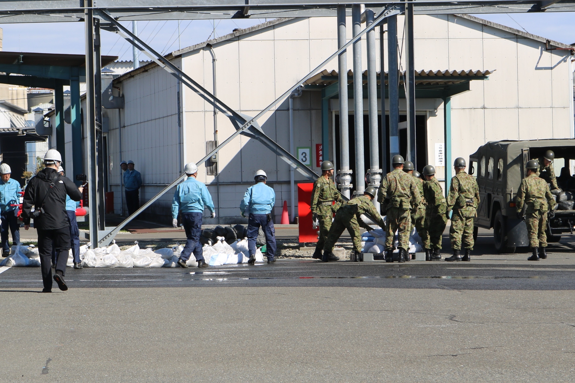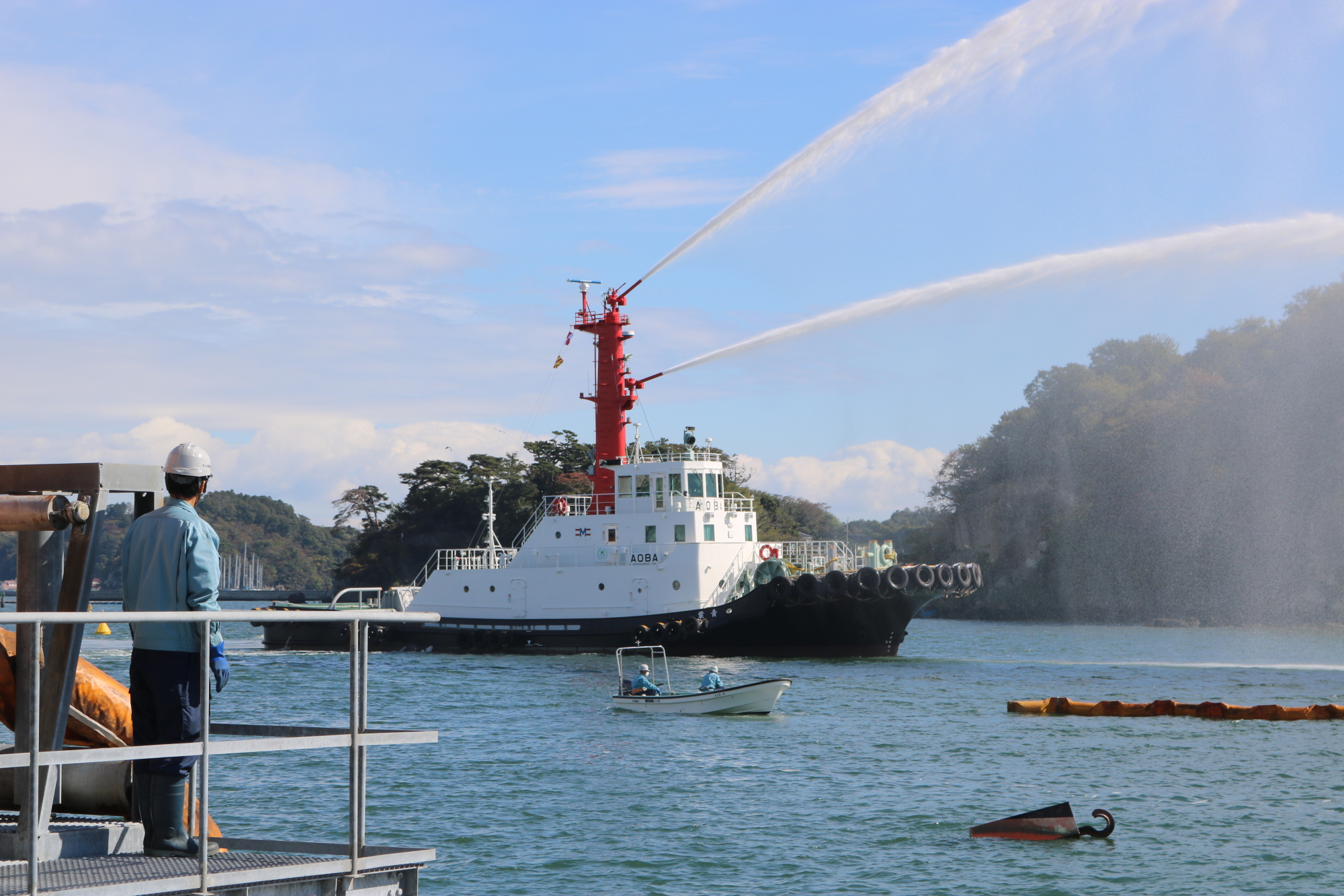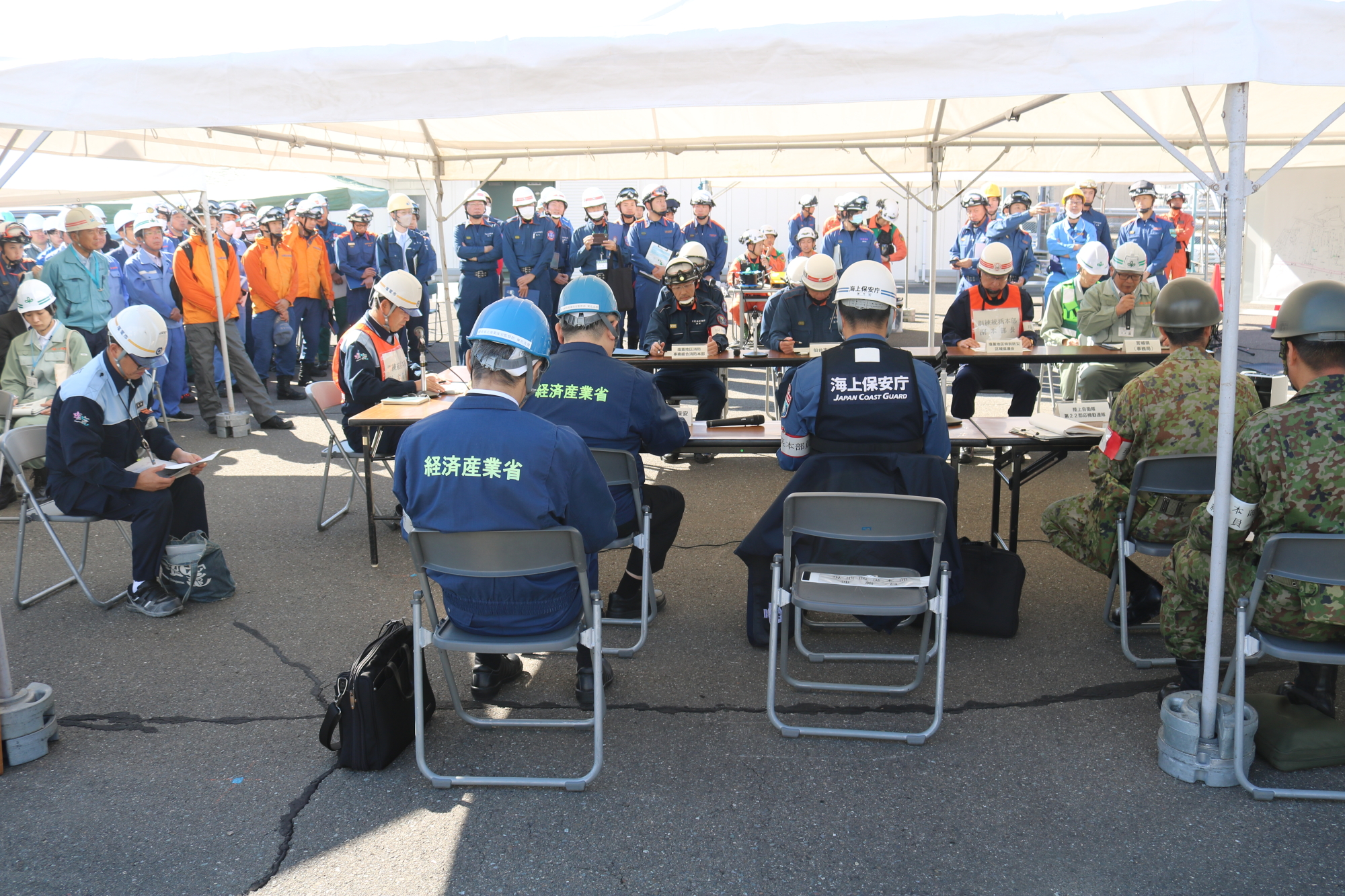 宮城県沖を震源とするM7.0の地震が発生し、塩竈市で最大震度6弱を観測したとの想定で訓練が開始され、緊迫した雰囲気の中、漏洩油対応等の初動対応訓練をはじめ、現地防災本部設置運営訓練や交通規制訓練、そして陸上、海上、航空の各部門に分かれて各種訓練が実施されました。